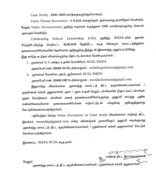 பள்ளித் தலைமைப் பண்பு மேம்பாடு குறித்து தேசிய மாநாடு-அரசு / அரசு உதவி பெறும் பள்ளிகளின் தலைமையாசிரியர்கள் -(தொடக்கப் பள்ளிகள் முதல் மேல்நிலைப் பள்ளிகள் வரை -)Video Document அல்லது Case study பதிவேற்றம் செய்தல் வழிகாட்டுதல் Posted bySha EDUCATENovember 1, 2019November 1, 2019Posted inகல்வி செய்தி JOIN TELEGRAM GROUP LINK Share this: Share on WhatsApp (Opens in new window) WhatsApp Share on Telegram (Opens in new window) Telegram Email a link to a friend (Opens in new window) Email Like Loading... Related